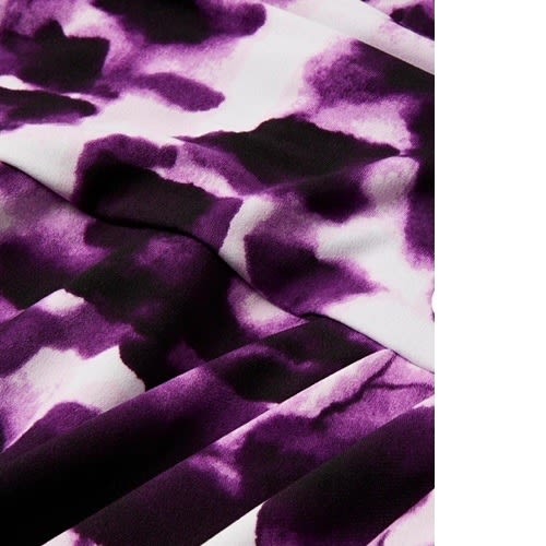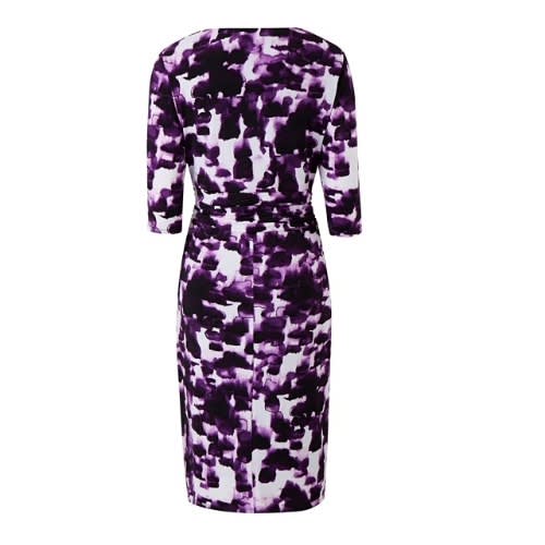 Exclusive to us in sizes 24 to 32. This Together classic slinky jersey dress has been given a modern update in our purple watercolour print. With a wrap front skirt, three-quarter sleeves and V- neck this dress ensures perfect fit and comfort. Lined.