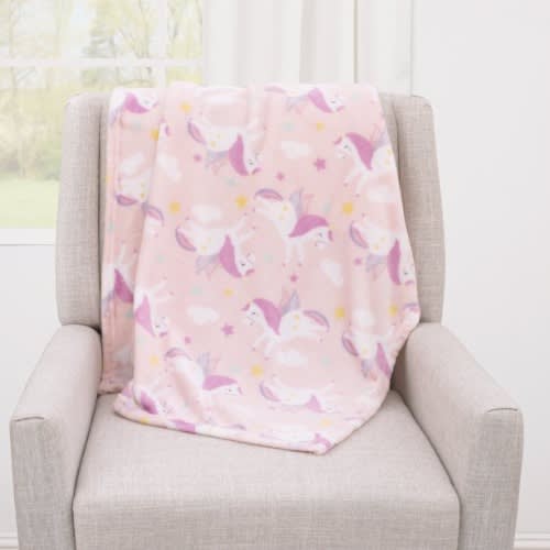 The Parent's Choice Pink Unicorn infant girl baby blanket features a sweet allover print of unicorns playing on a soft pink background - perfect to snuggle your baby girl! The convenient 30 x 36" size makes it a perfect blanket for everyday use, or while on the go. Finished with a hemmed edge, this infant baby blanket makes a perfect gift for little girls. Oeko-Tex certified; tested for harmful substances.soft and plush 100% polyester fabric makes this infant baby blanket extra cozy and warm