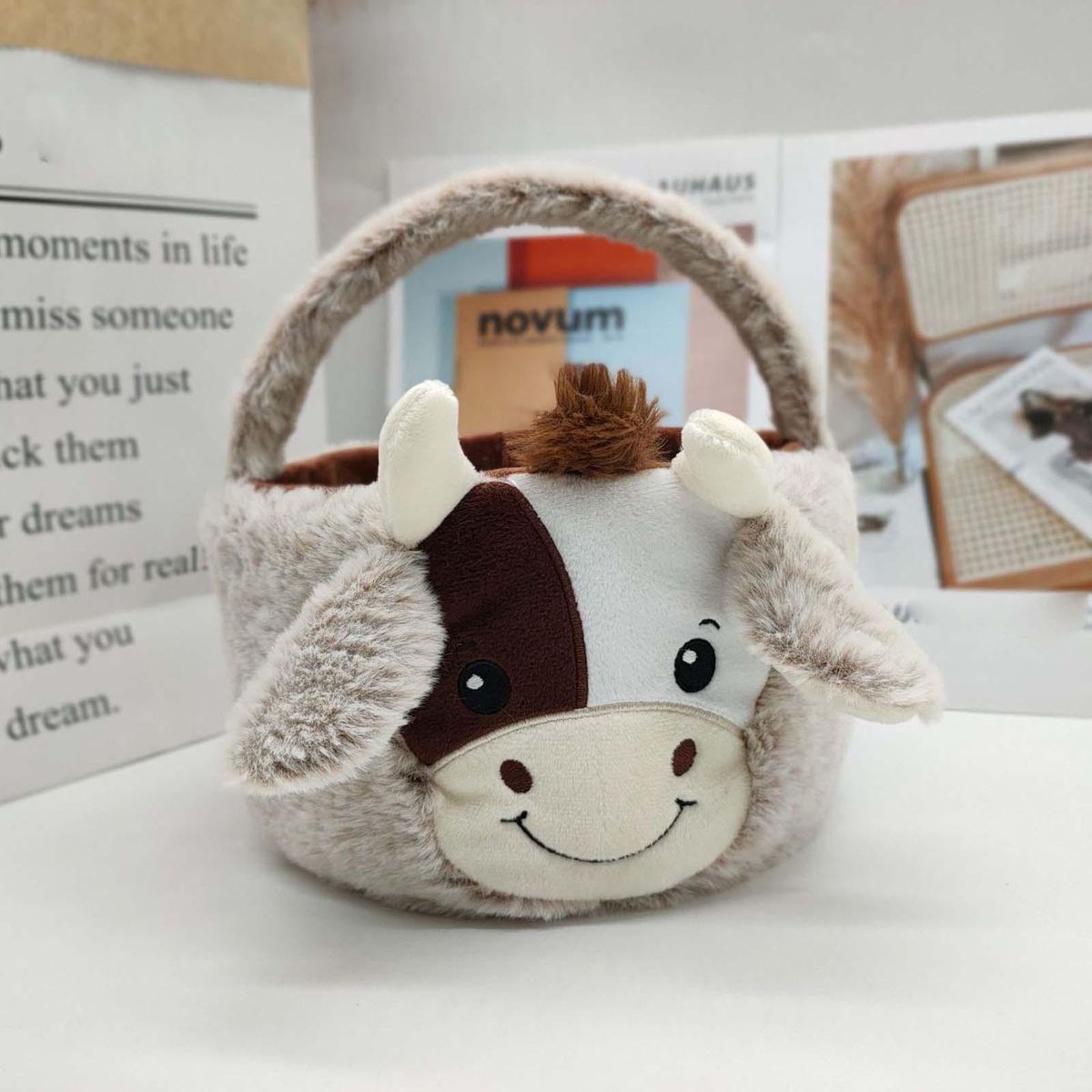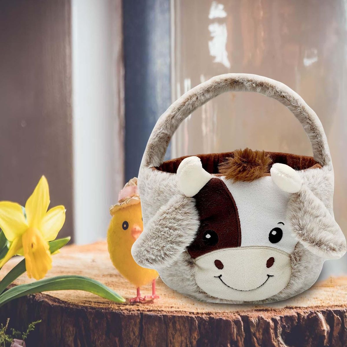 Cow Plush Design:This plush Easter basket is a 3D figure of a cute cow, plush basket with cute ears