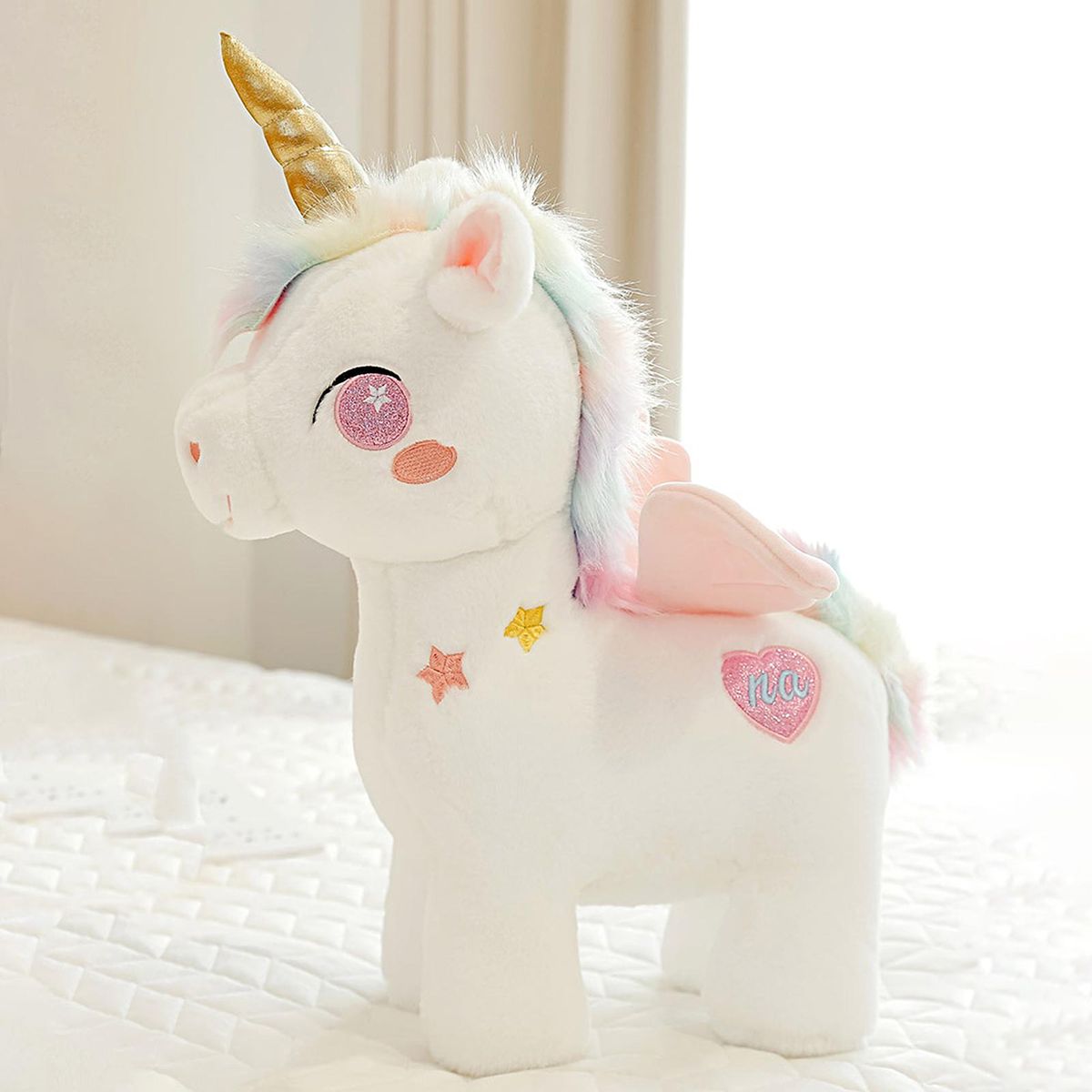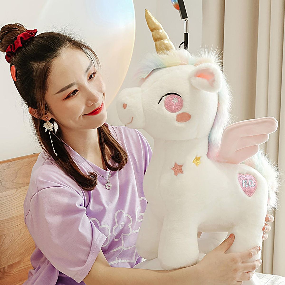 Such a cute cartoon Pegasus plush doll can be used as sofa decoration, car decoration, sleeping pillow, hugging pillow, photo props, kids toy and gift.