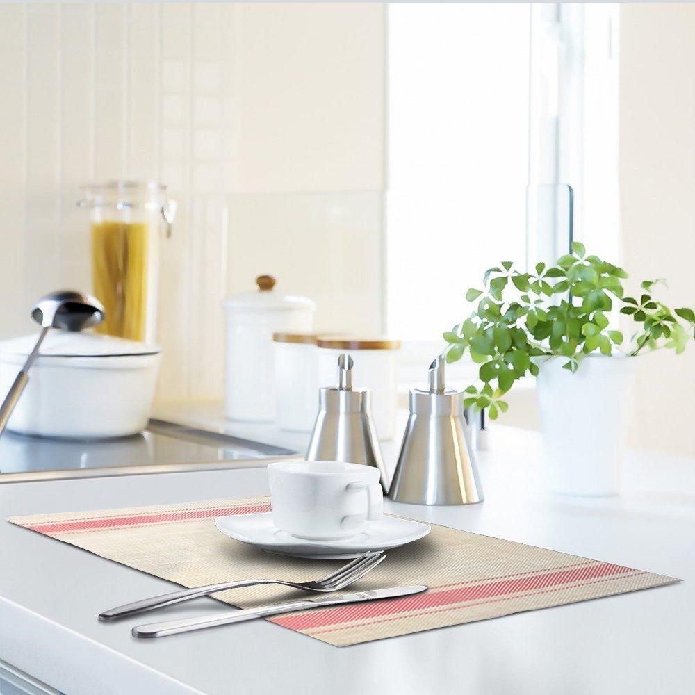 Fashion and as description pmats fully show elegant.Greasy dirt can be easy to clean,washable and heat-resistant.Various kinds of designs to be chosen to match the decoration of your family.The use of pmats show fashion and high-quatity cultural taste of the owners,a delightful pmat that can make you are in happy mood when eating,it will help improve your dining experience and impress your guests,which is a stylish life style of modern life.