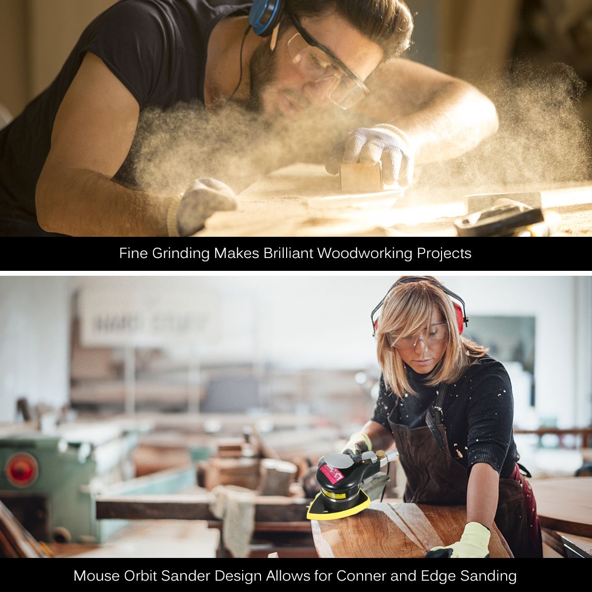 Premium Air Sander -- Compact Air Random Orbital Sander is easy to handle in palm; premium quality housing wear resistant, durability and lightweight, high strength, long service life.