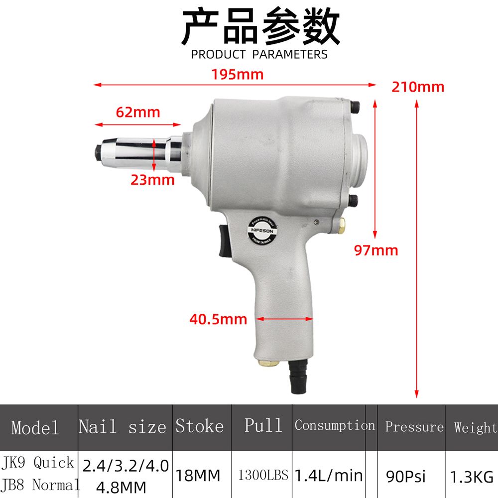 HIFESON Pneumatic Rivet Naiun Air Nailer 2.4mm-4.8mm Automatic Riveting Tool Rivet Nail Machine Staple gun Core-pulling stap