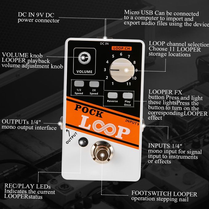 POCK LOOP Looper Guitar Effect Pedal 11 Loopers Max.330mins