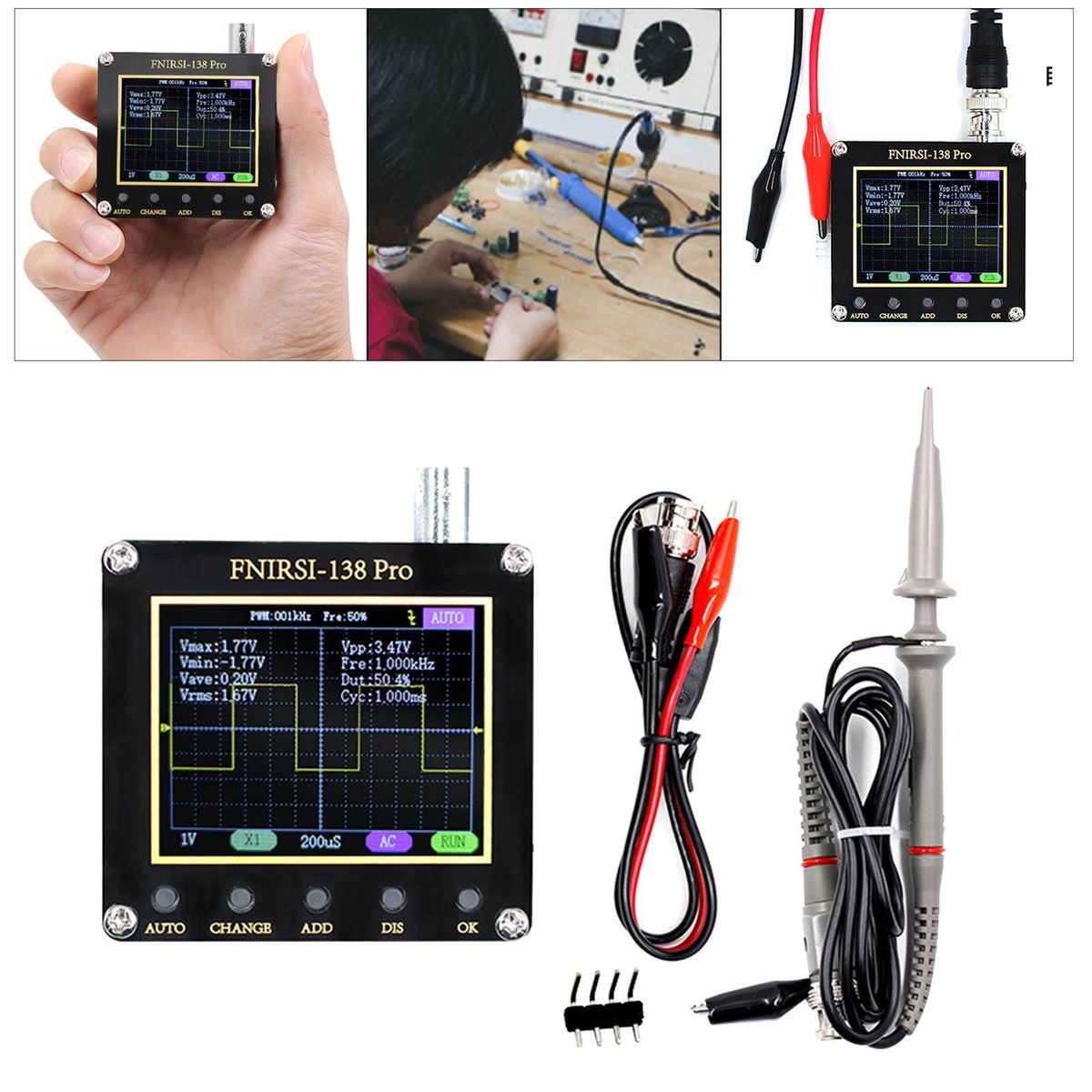 digital oscilloscope;digital oscilloscope 1 channel;portable oscilloscope handheld 200 2.4 lcd;Signal Pocket Oscilloscope Vectorscopes;DIY Electrical Measuring Layout Tools with Probe;320x240 Resolution 128kbit Memory Depth