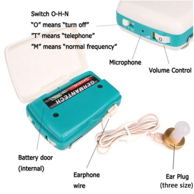 Features:Clamp of this product helps you fix the hearing aid in your pocket.3 different shape earplugs are provided, which can fit different people's ear.Suitable for people who have severe hearing impairment, especially for elderly people.