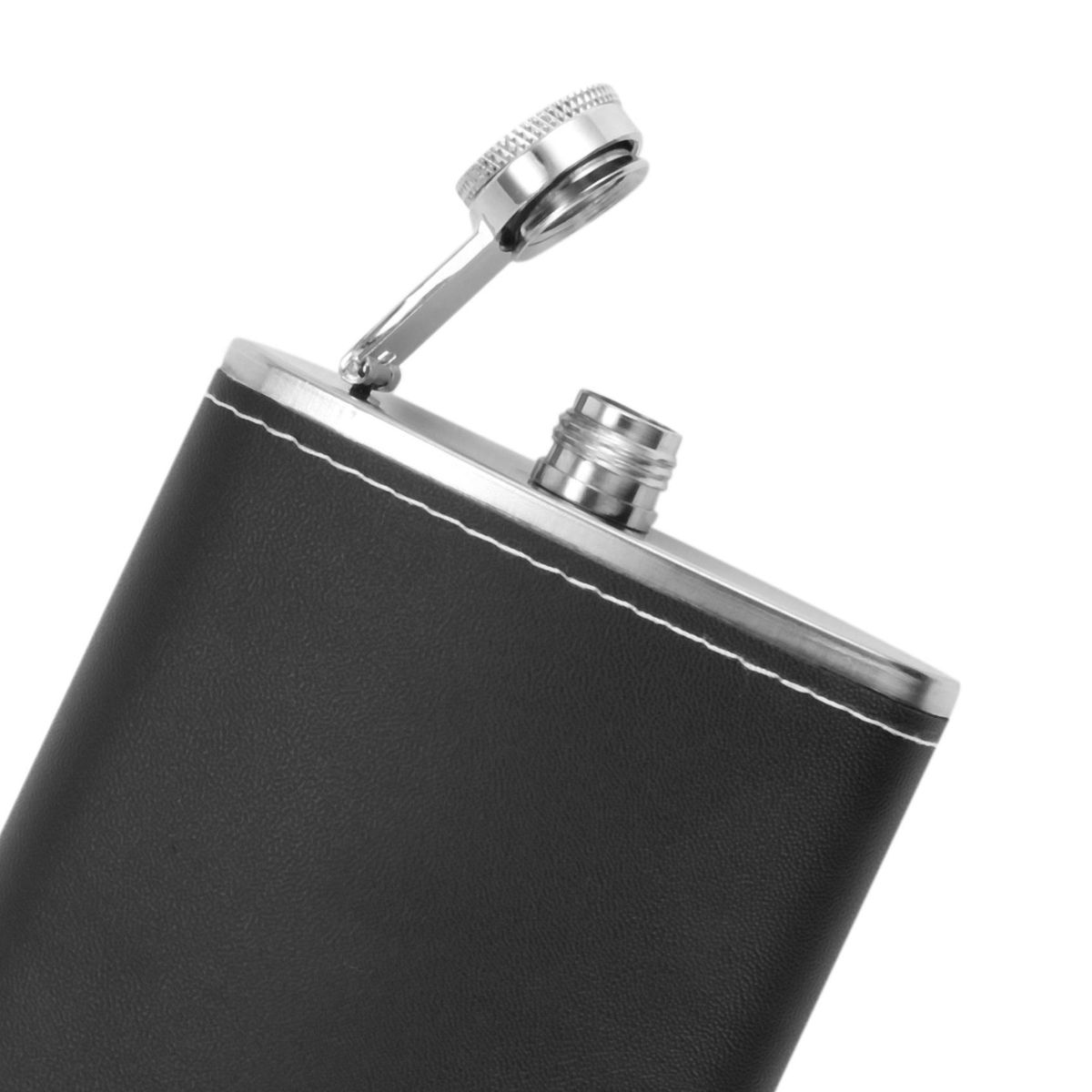Wrapped in sleek high quality black leather, that gives you a safe firm grip while drinking from it or taking it up from your pocket or suit. A luxury Everyday Flask for weddings, camping, fishing, hunting, festivals, concerts and much more.