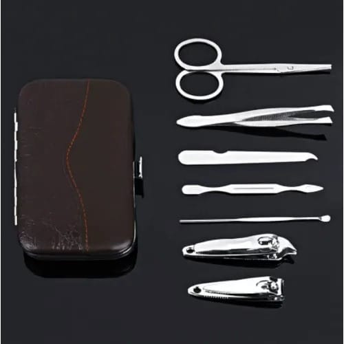Package includes:1pc x Nail file1pc x Ear pick1pc x Dead skin fork1pc x trimmer1pc x Nail cutter1pc x Tweezers1pc x Scissors1pc x Mirror