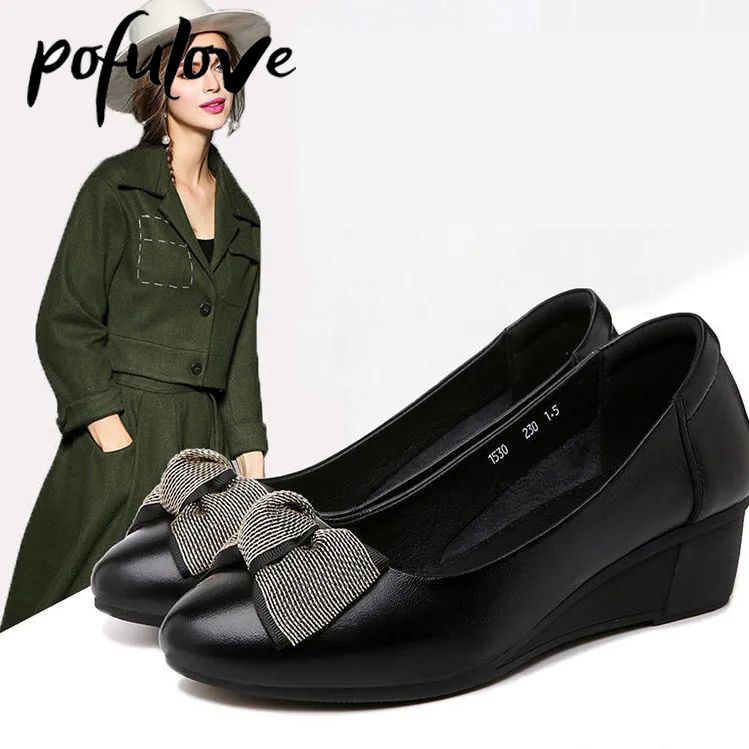 1X Pofulove Womans Shoes Leather Wedge Platform Heels Office Ladies Shoes for Women Spring Autumn Female Zapatos Oxfords Fashion