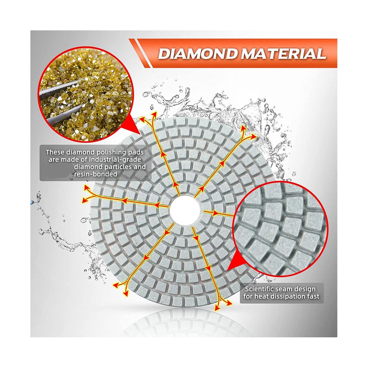 [Wide Application]: With this set, you can rest that the job will be done right, the first time.Great for all solid surface materials such as quartz, granite, marble, terrazzo floor, glazed tiles, vitrified tiles, natural , glass, and concrete countertops. etc. For wet and dry polishing, for best results use polishing pads with water.