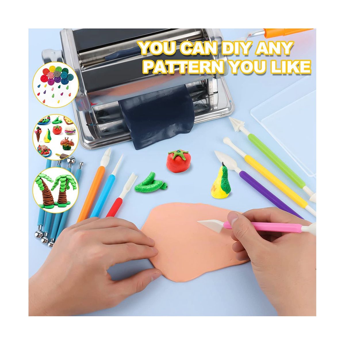 Custom Clay Blends: With the 6 gears on the clay roller machine, you can easily create custom clay blends by adjusting the thickness and texture of the clay to suit your project needs. The included 22 pieces clay shaping tools - stainless steel round circle shape cutter, plastic polymer clay shaping tools rolling pin can help you easily mold clay into various shapes.