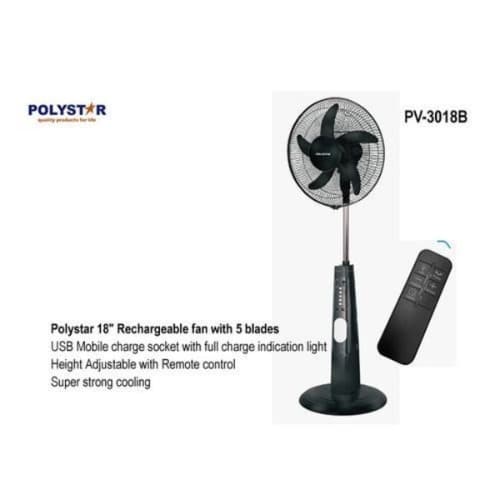 Buy Polystar 18-inch Rechargeable Standing Fan With Remote Control in Nigeria