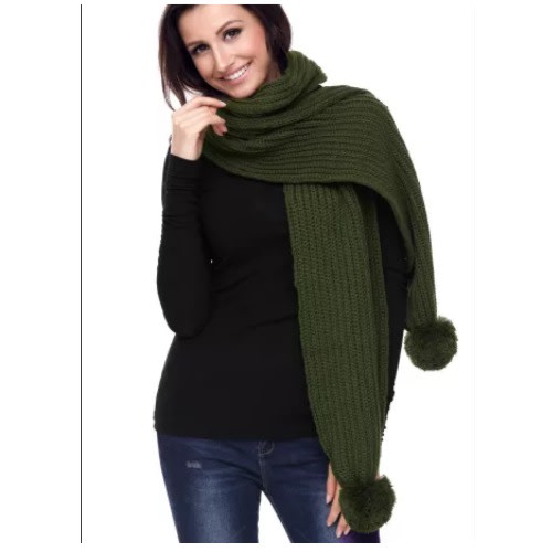 Buy Pom Pom Ribbed Knit Scarf - Green in Nigeria