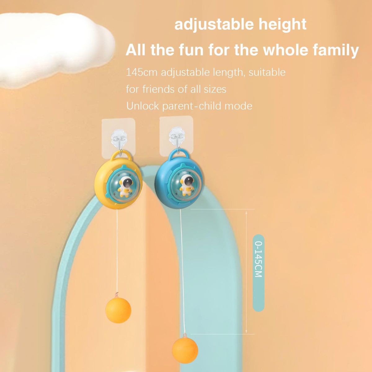 【Easy to Set】: First, the sticky sticker can be glued to the upper door frame, then hang the ball; this table tennis trainer is very easy to install. Press the button, adjust the length of the rope, and the ball can automatically be rebounded.