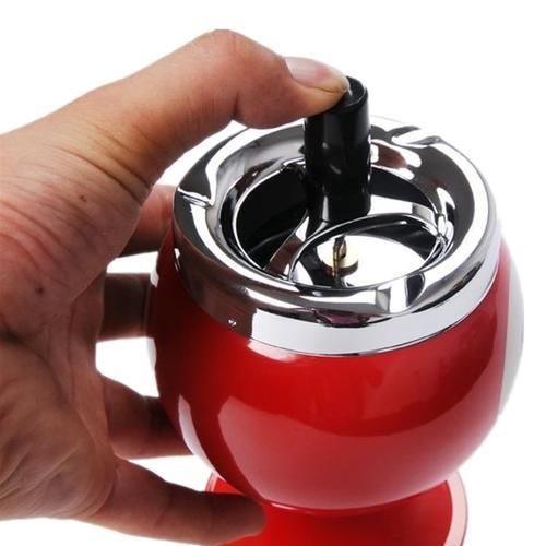 Simply press the grip and the tray will rotate automatically to scatter the ash to the bottom of the ashtray. Windproof. Great to keep the table and carpet clean while smoking.