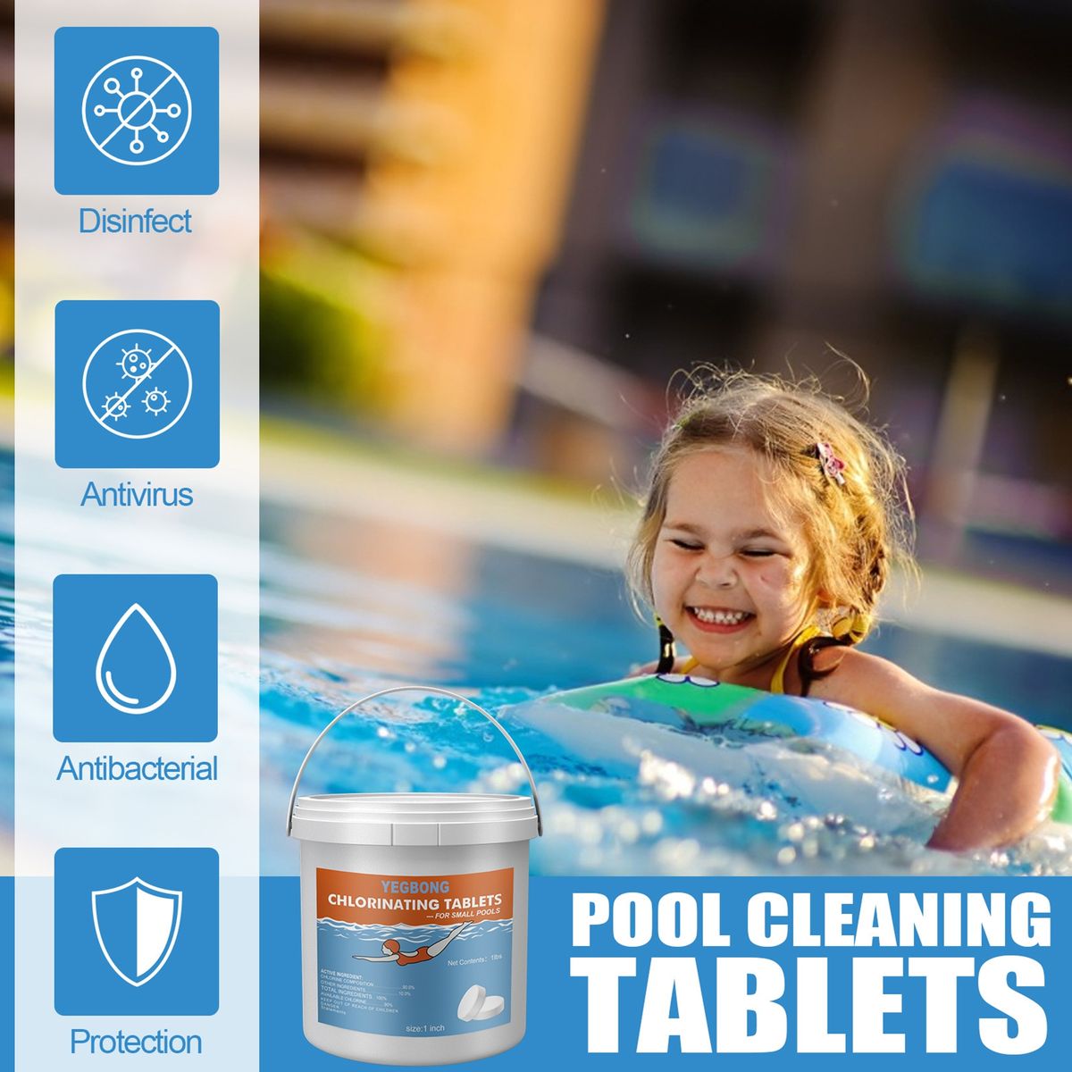 It is the chlorine tablet that can effectively clarify water, control algae, as well as prevent corrosion, scale, and stains. Besides, it is long lasting, stabilized, and slow dissolving.