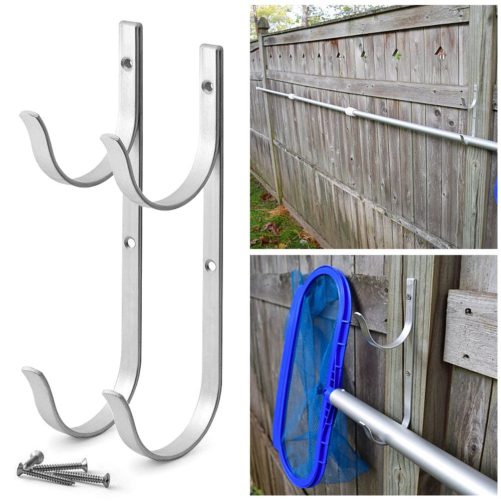 These hangers can help utilize your outdoor space more effectively, get everything organized, and find what you need at a glance. It can hang a variety of s, such as telescopic poles, skimmers, leaf rakes, nets, brushes, vacuum hose, garden tools and Swimming pool accessories.