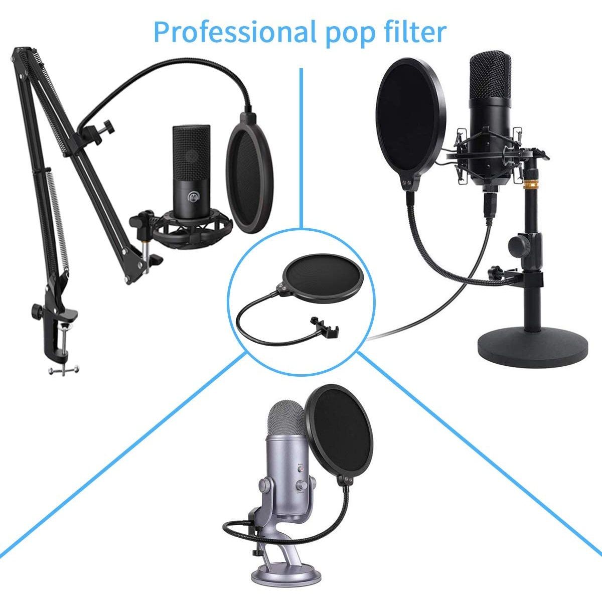 - Double Screen Design: double layer of nylon to catch the plosives, pop shield efficiently reduce the plosive, wind interference, saliva spraying during your recording or broadcasting, get a clear and loud sound.