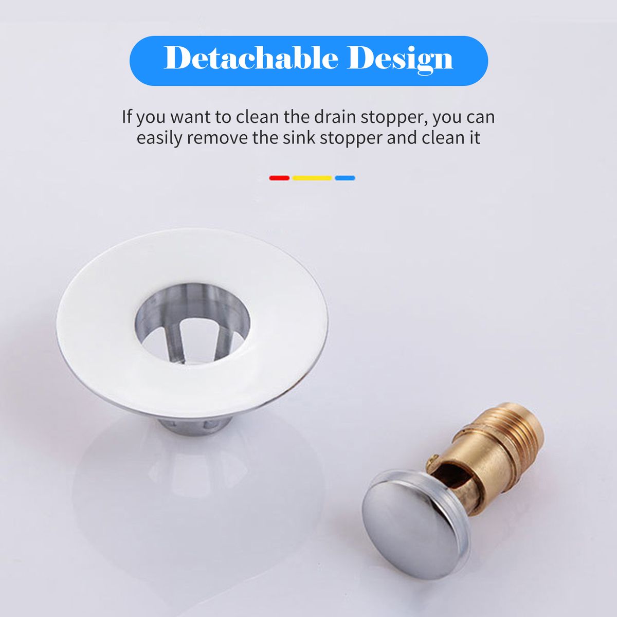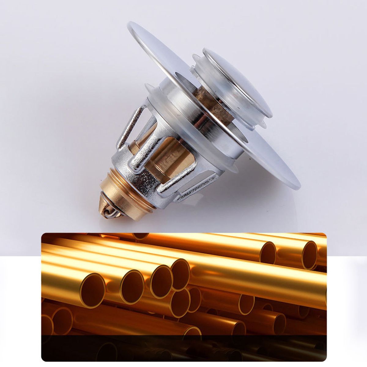 [Pop-Up Drain Filter]This bathroom pop-up sink stopper has a built-in spring, which can switch freely between pop-up and closed states.