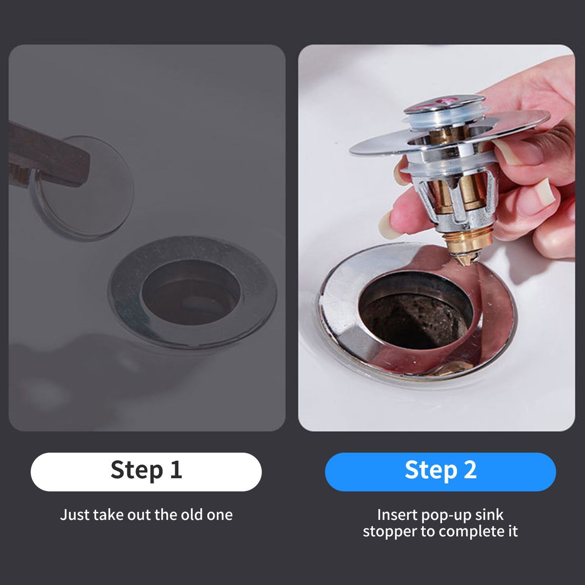 The pop-up sink stopper is made of quality stainless steel and brass materials, anti-rust,anti-cracking, integral molding. Good bounce and rebound strength, quickly seal and drain water with a single press. Great for the basin, bathroom sink drains or shower bathtub drains.