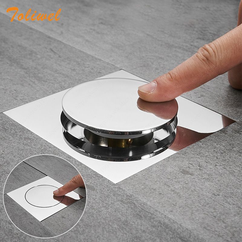 1X Pop Up Foot Floor Drain BrChrome Anti-odor Bath Drains Push Down Deodorization Square Matte Shower Room Cover Plug 10 * 10cm