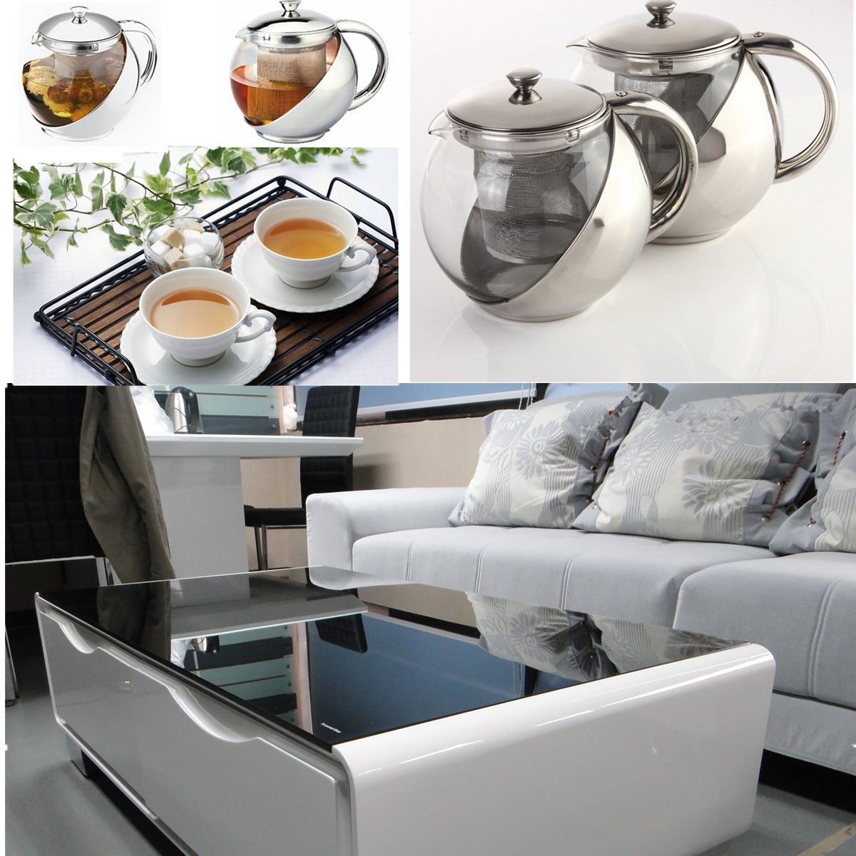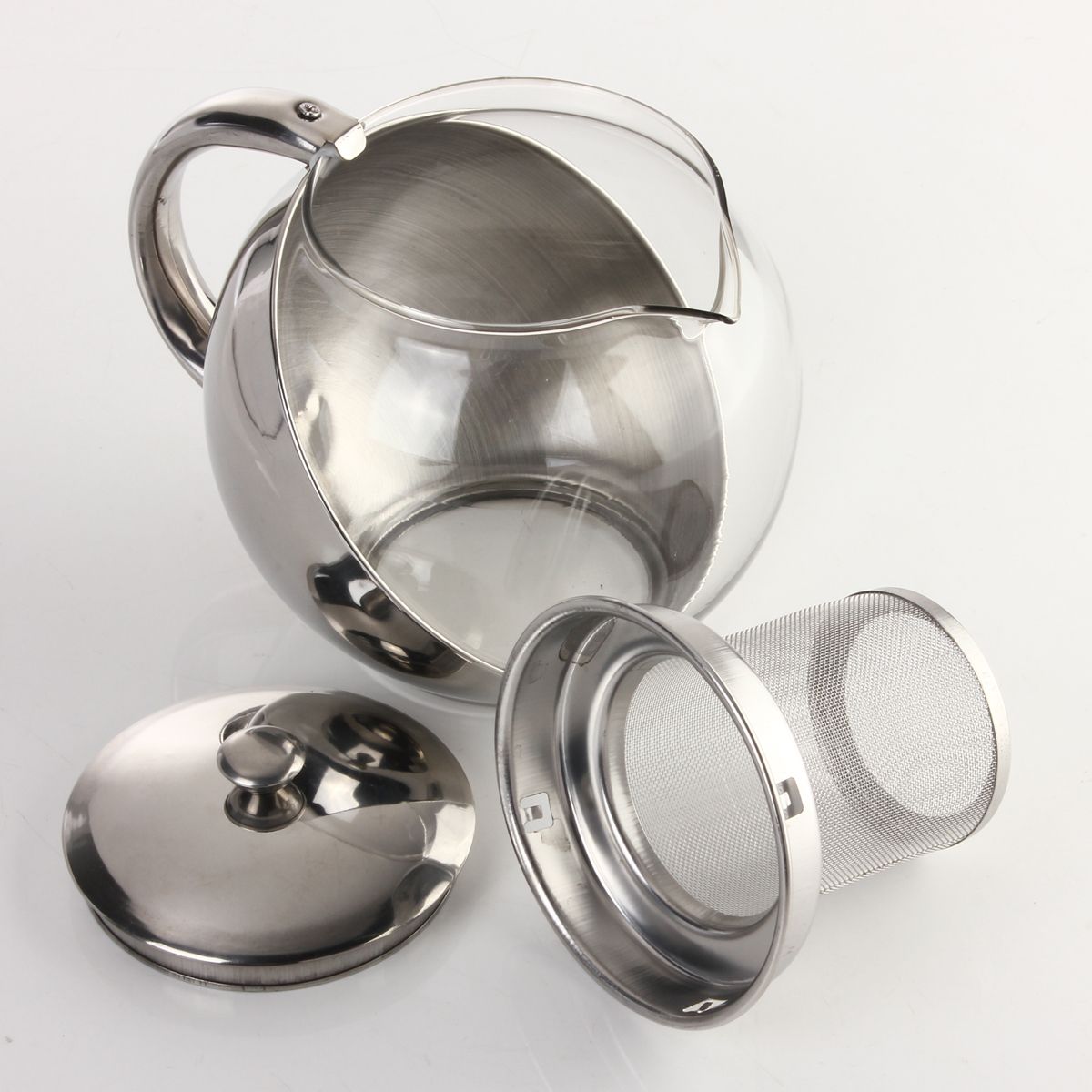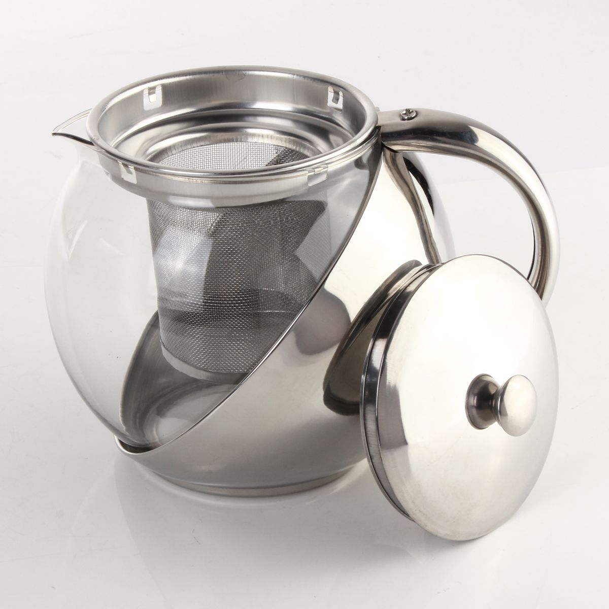 1 x Modern Sylish Stainless Steel and Glass Teapot with loose tea leaf