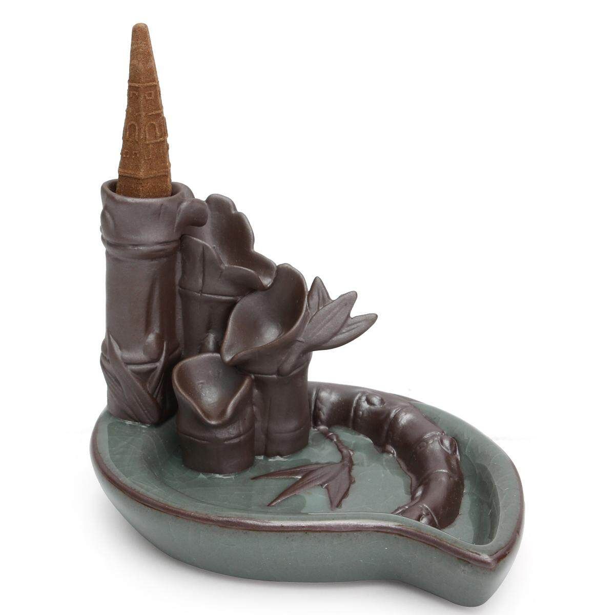 1X Porcelain Bamboo Backflow Ceramic Cone Holder Decor