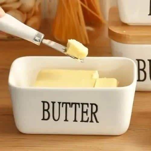Buy Porcelain Butter Dish With Bamboo Lid And Knife - 600ml in Nigeria