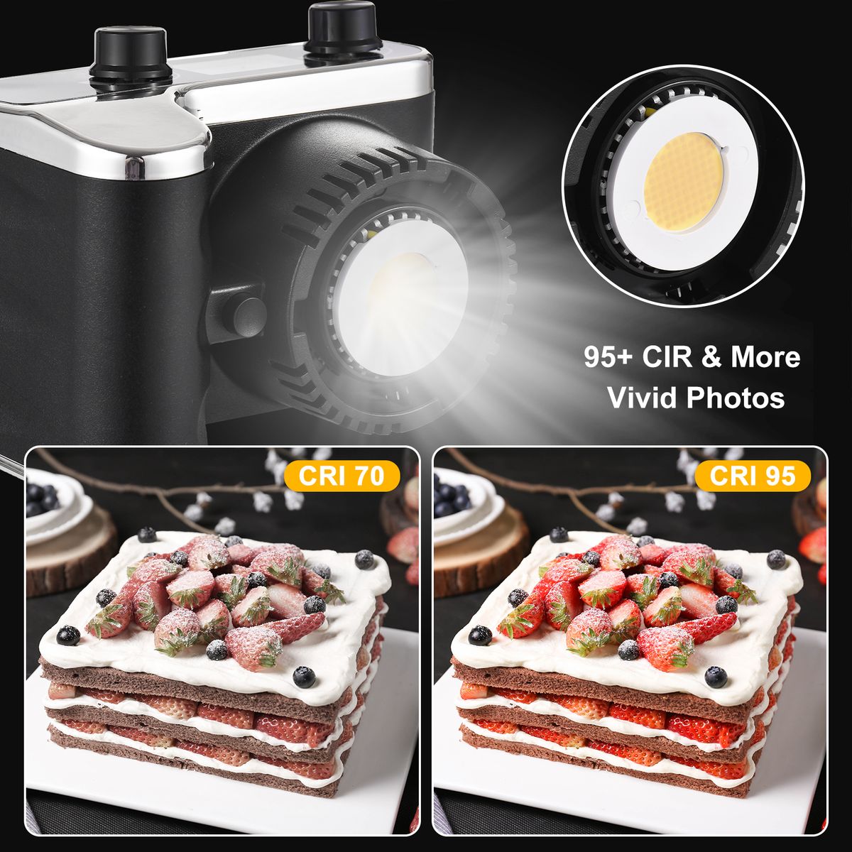 【Bi-color Temperature & High Color Rendering】2800K-6500K bi-color temperature let you have warm light and cold light effects easily; the color rendering index is over 95, which guarantee natural color for video recording, portrait photography, and studio filmmaking.