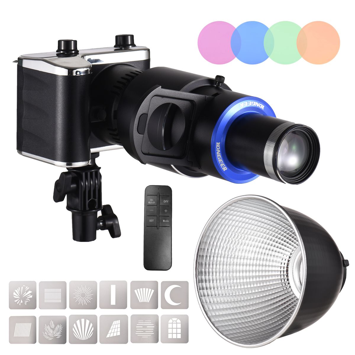 【With Optical Conical Snoot for Modeling Light】Comes with a optical conical snoot to help you shape special light and shadow; plus the 4pcs color filters and 12pcs graphics cards, you can create various colorful lighting effect and different graphics lighting effects to make your creation more fascinating.
