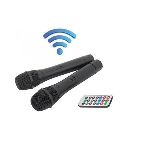amplifier operating from mains or internal rechargeable battery powers a 12" bass driver and 1" compression driven. A pair of included VHF handheld wireless microphones work in conjunction with the internal receiver, two standard 'wired' microphones can also be plugged in giving the user a total of four microphones. Finally an auxiliary line input and integral USB/SD media player allow for direct reading of MP3s from USB or SD cards. iPods, Laptops, CD players can also be connected via the PAs RCA (line input) located on the rear of the unit. A moulded handle and pole mount are included and a retractable trolley handle and rear wheels provide easy portability.