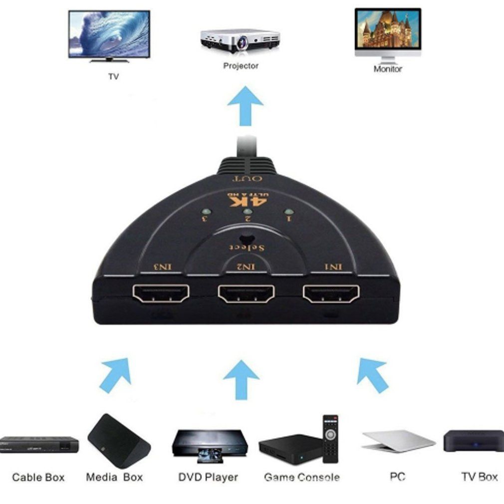 Portable 3 HDMI compatible Ports in and 1 Out Full HD 4K*2K 1080P Switch 3D Image Display for Multi Media Devicesportable 3