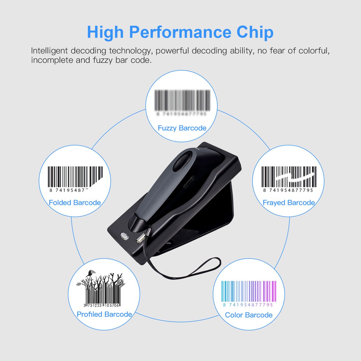 Decode Capability: Smoothly scan and decode one-dimensional code(Codabar, Code 11, Code93, MSI, Code 128, UCC/EAN-128, Code 39, EAN-8, EAN-13, UPC-A, ISBN, Industrial 25, Interleaved 25, Standard 25, 2/5 Matrix, etc.) and two-dimensional code(QR, PDF417).