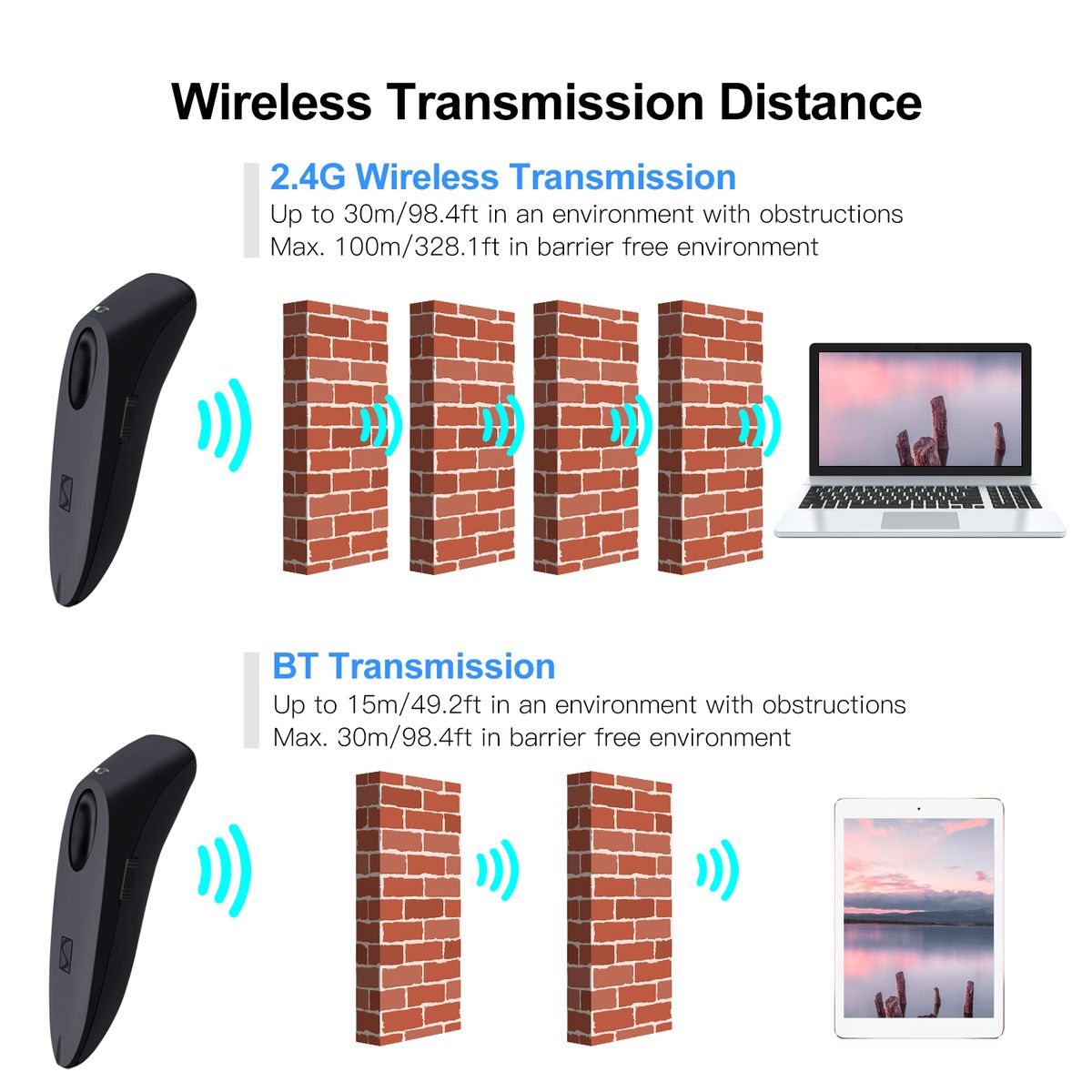 2.4G Wireless Transmission Distance: 100 meters(Outdoor), 30 meters(indoor)