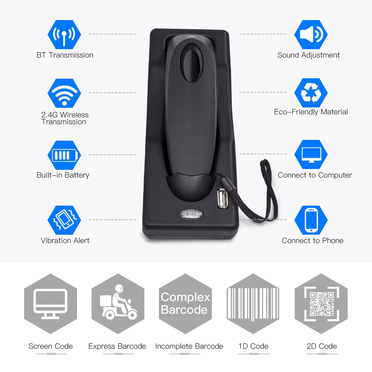Handheld barcode scanner can be used to scan and decode 1D/2D/QR barcodes, fast scanning speed, high accuracy. Support screen code scanning.