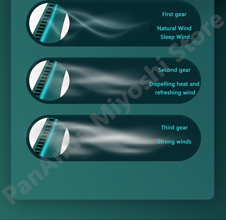 - Three speed wind regulation: switch freely, gentle blowing, strong blowing to quickly cool down.