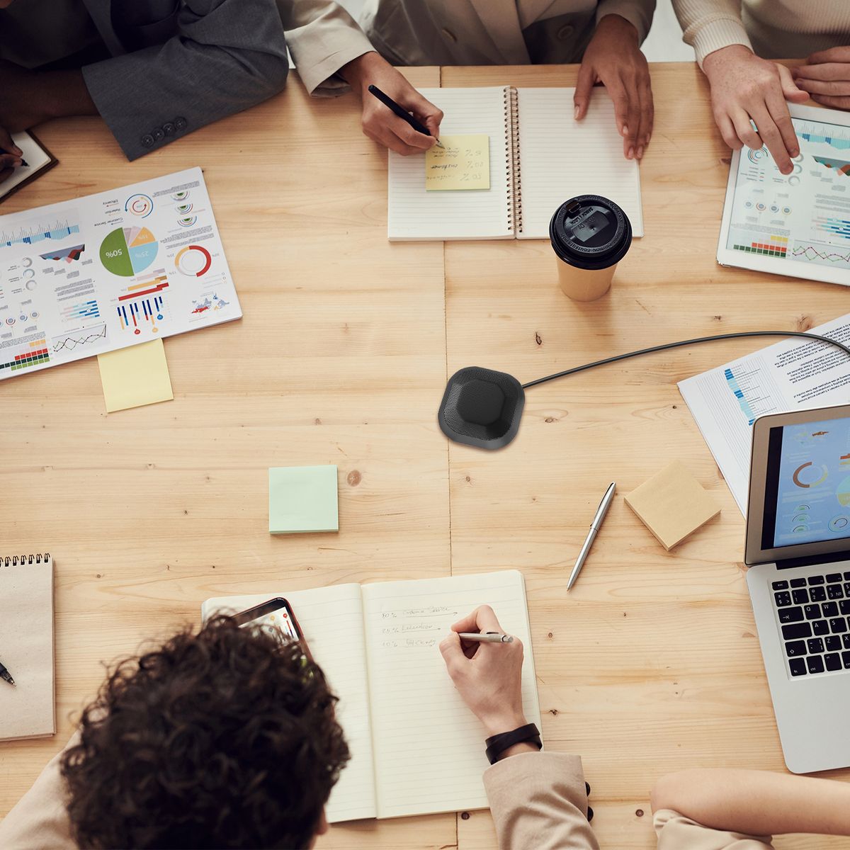 High quality 3.5mm plug, put into the computer microphone jack, not the earphone output. Outstanding sound quality, make video conference clearer and smoother. Up to 3 meters pick up distance.