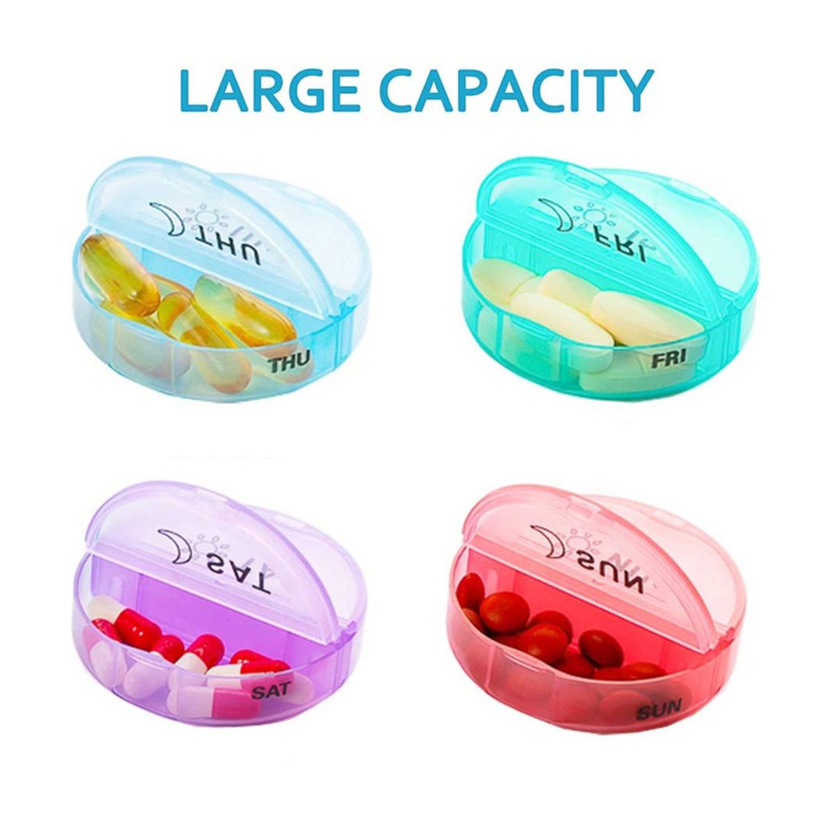 Large capacity, each small compartment size is big enough to hold several pills.