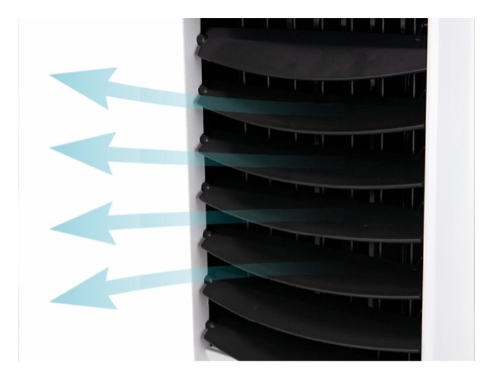 LARGE DETACHABLE WATER TANK: Simply fill the large 7 Litre water tank with cold water and cooling packs (2 x included) and allow the unit to automatically cool and moisturise the air to both combat dry heat and low humidity