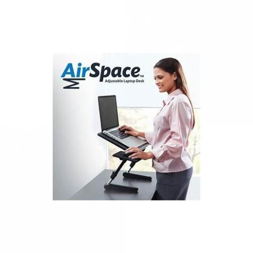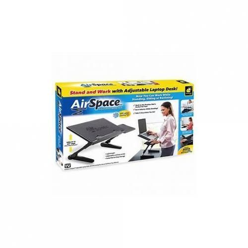 When you're sitting at your desk all day, you just want to stand to the pain goes away. A regular standing laptop desk is so expensive and heavy. AirSpace Adjustable Laptop Desk is a portable standing laptop desk that fully adjusts to any position you need. Now you can easily use your laptop anywhere comfortably - whether you're snuggling in bed with a movie, on the run, or need a break from sitting. There's no need to look down at your laptop and suffer from neck pain. Easily adjust AirSpace to make your screen eye-level. The secret is the custom fit adjusters that allow you to position the desk exactly the where you want it. The sturdy tray has a built-in whisper quiet laptop cooling fan to prevent overheating. An included mouse pad tray lets you utilize maximum space on the folding laptop desk. Unlike an adjustable laptop desk stand, AirSpace folds completely flat for easy storage. Stand up and stretch your back while working. Every device big or small, AirSpace desk can hold them all!