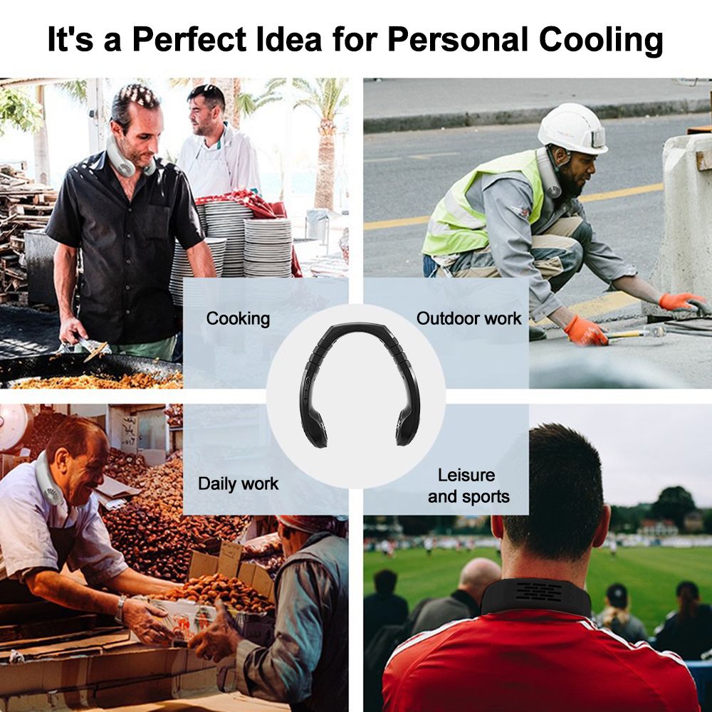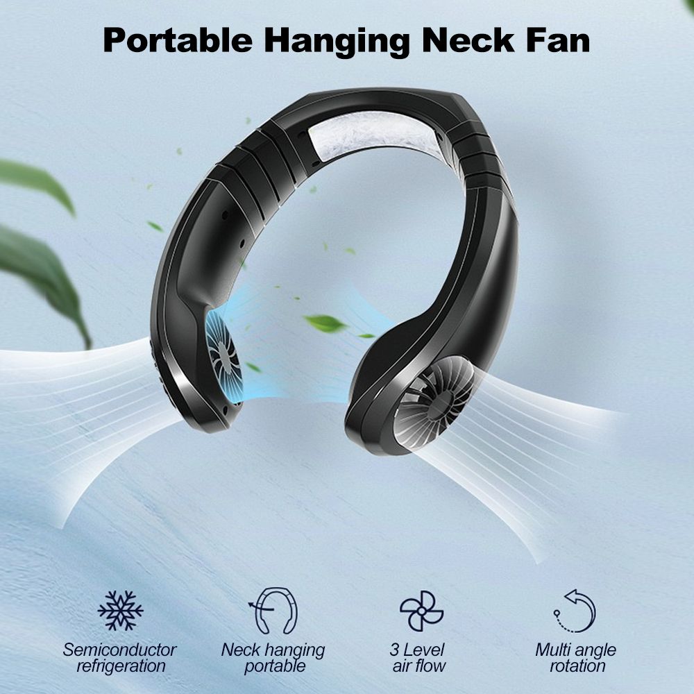 This portable hanging neck cooling fan frees your hands, with 2 fan heads, 3 gear wind speed adjustable, you can adjust it freely according to your need. Wear it on the neck when doing sports outdoors and put it on the desktop indoors.