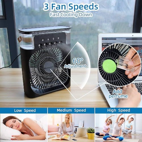 Buy Portable Air Cooler Fan With Humidifier And 7 Color Light- Rechargeable in Nigeria