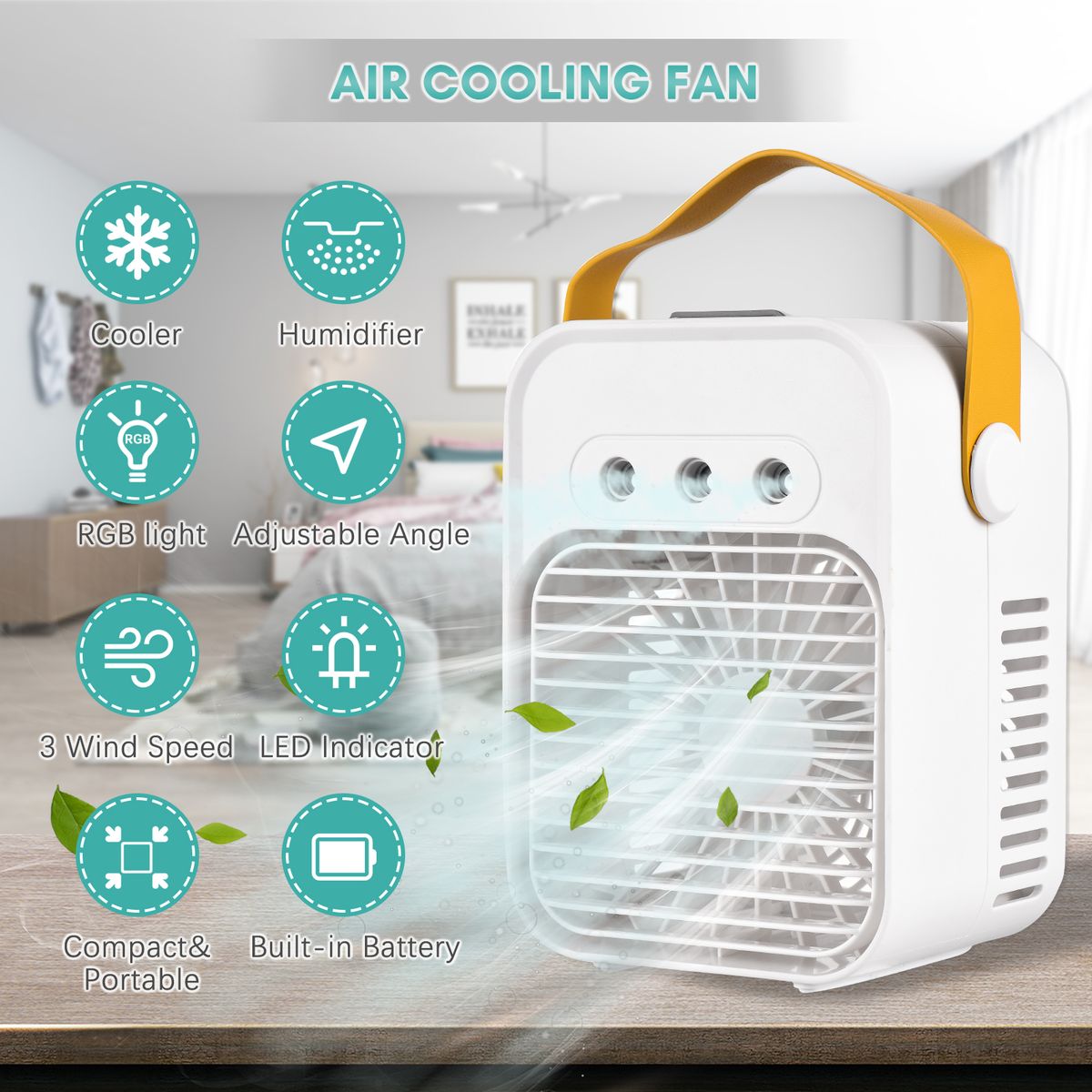 2-in-1 Quick Cooling Air Cooling Fan - Integrates fan, air cooler, night light, and humidifier, it is intelligent and cost-effective, helping you to quickly dissipate the heat in the hot summer.