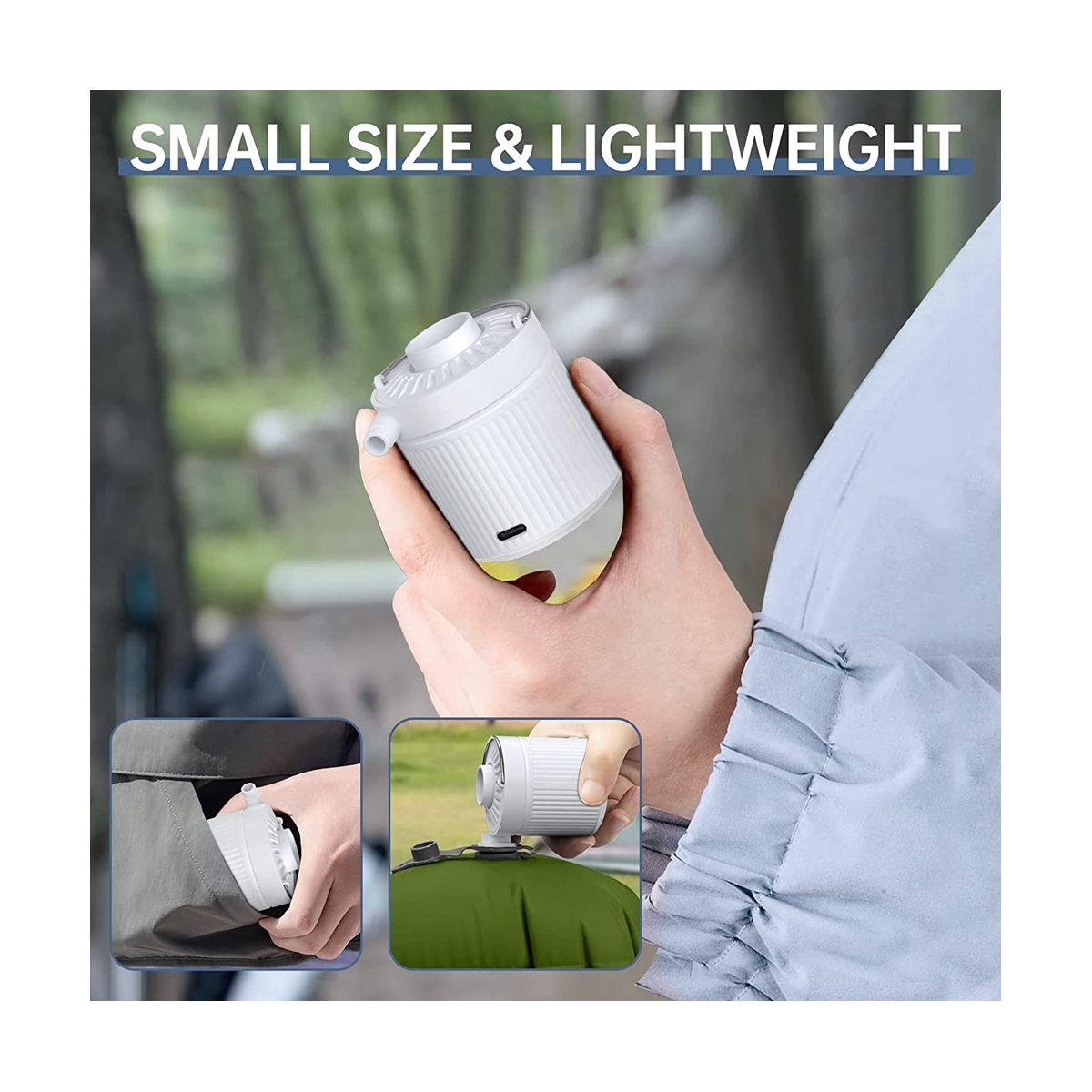 [Compact & Portable] It is very portable to carry and can be easily put into the backpack or your pocket when not in use, it will not put an extra burden on you. (NOTE: Double click to start the air pump and long press to open the led light.)