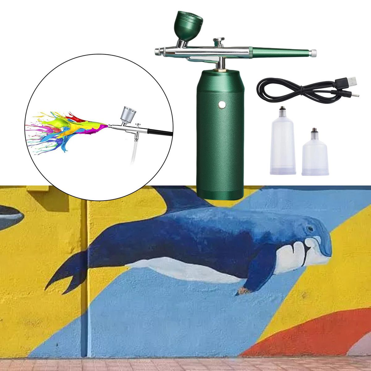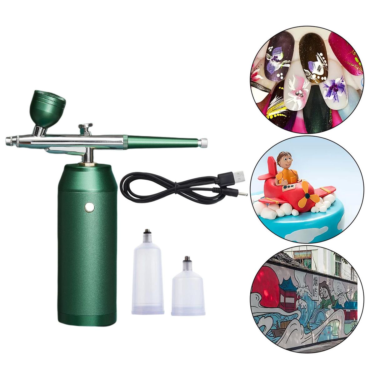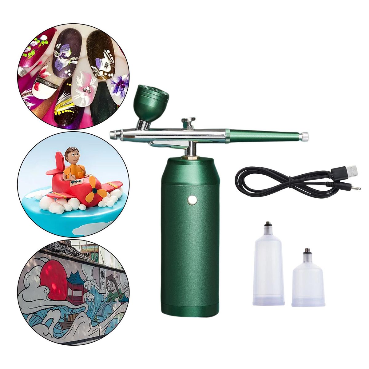 1 Piece Airbrush1 Piece Air pump1 Piece USB cable2 Pieces Bottles