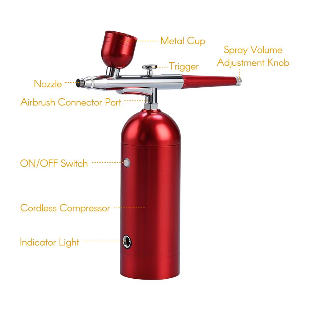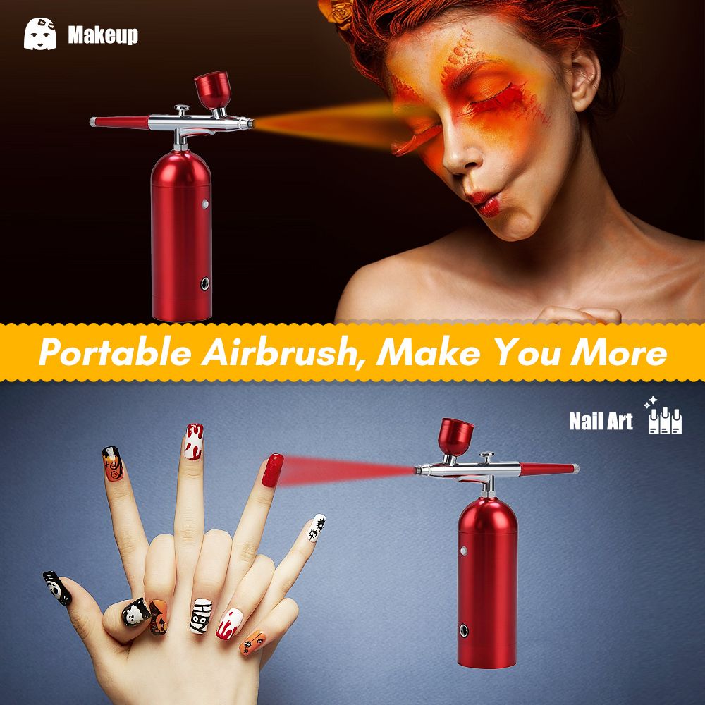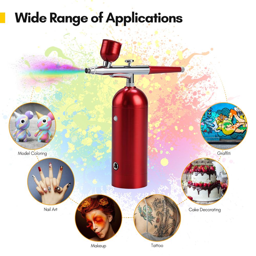 【Wide Applications】The airbrush is equipped with a 0.3mm nozzle for finer control of paint flow and less overspray, so that you can produce exquisite works and doesn\'t waste much paint, ideal for painting, models coloring, nail art, makeup, cake decorating, etc.