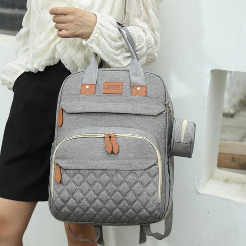 USB charging Port that connects with power bank in the inner pocket to keep your phone charged on the go.It can cater for your baby's needs such as diapers, wipes,food,water flask, feeding bottles, clothes, towels including mothers personal effects and lots more! Its can be used as Backpack, tote bag and fits into stroller. IT IS EASY TO CLEAN and the internal pockets are very easy to wipe clean.