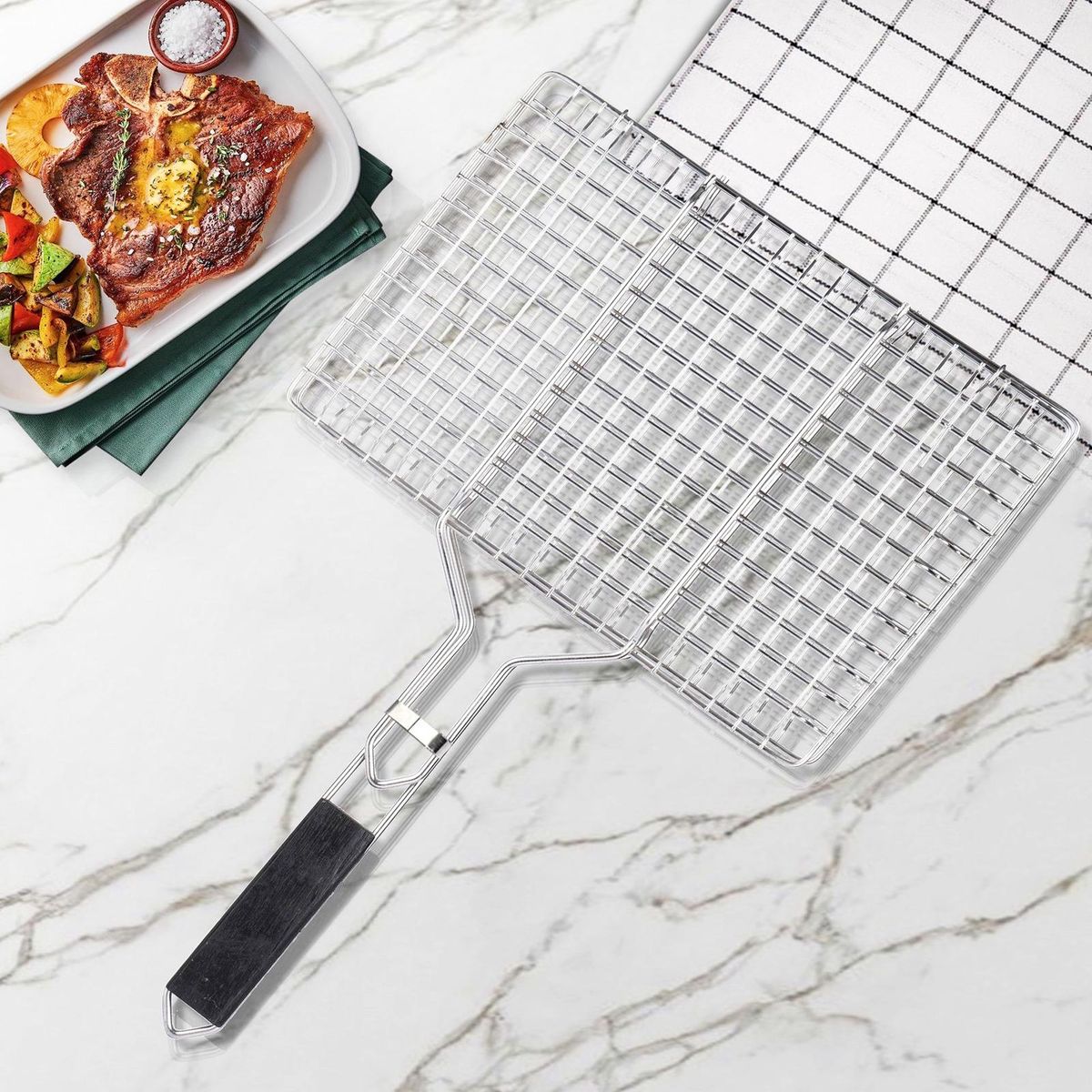 The foldable handle of our grill net allows for easy disassembly and storage after use. this makes it suitable for both indoor and outdoor grilling. say goodbye to cluttered spaces as this compact design saves valuable storage space in your kitchen or camping gear.
