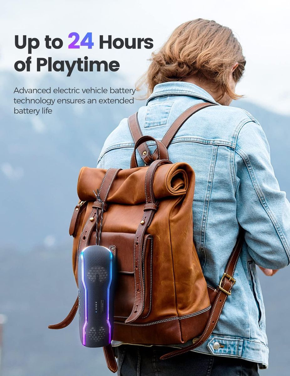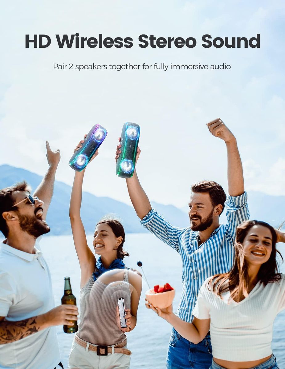 1[Loud Stereo Sound & Dual Pairing] Deliver surprisingly loud and well-balanced sound with virtually no distortion through 2 drivers and our proprietary technology. Enjoy up to 25W room-filling sound with punchy bass, strong midranges, and crisp highs. Pair 2 speakers together via Bluetooth to play the same music in perfect sync, double the volume, and create an immersive stereo sound experience. It is your perfect partner for playing games, listening to music and watching movies.
