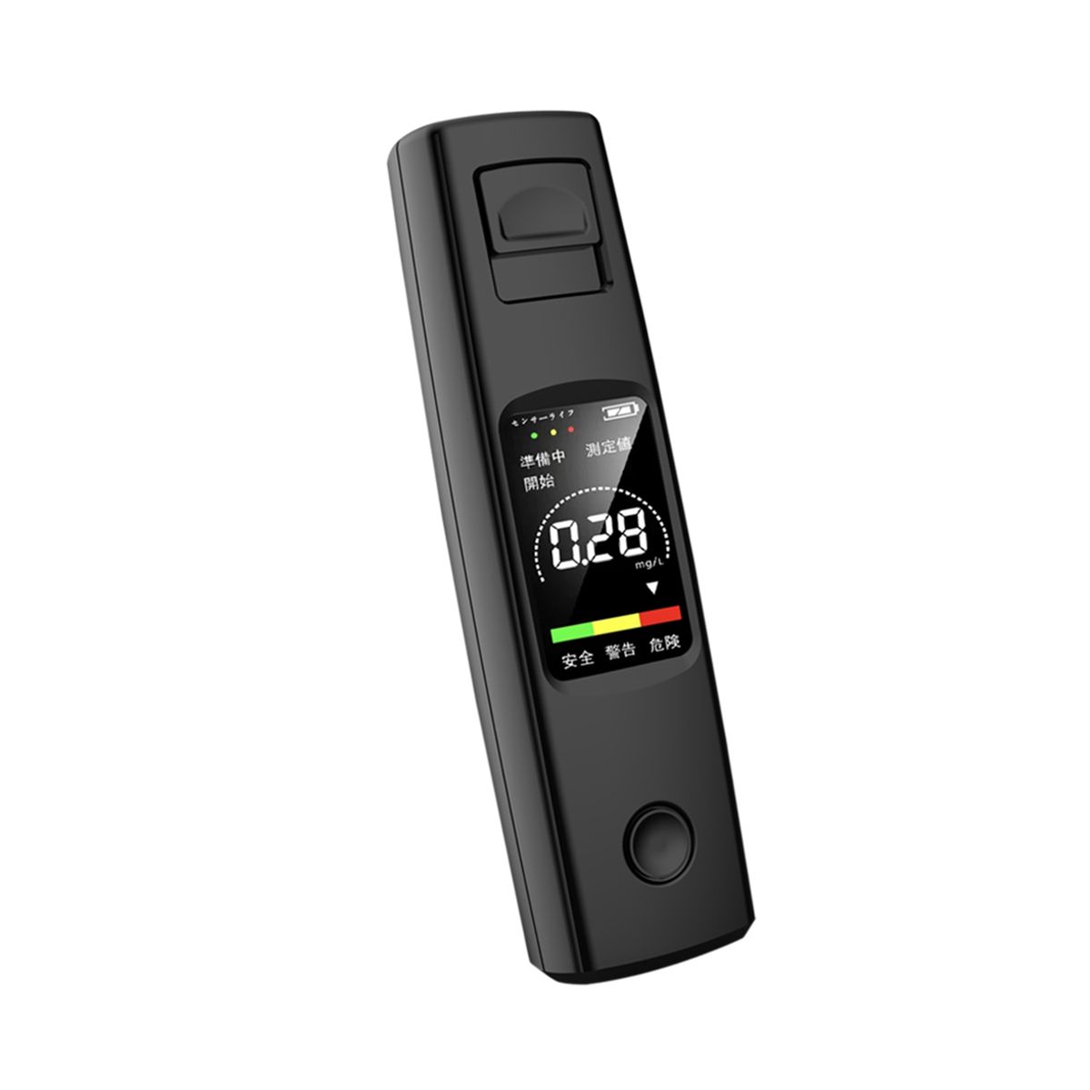 LCD digital screen, clear at a glance. Caution: 0.03% BAC (0.3g/L) le;alcohol concentration<0.05% BAC (0.5g/L); Danger: ge;0.05% BAC (0.5g/L), with sound and light alarm.